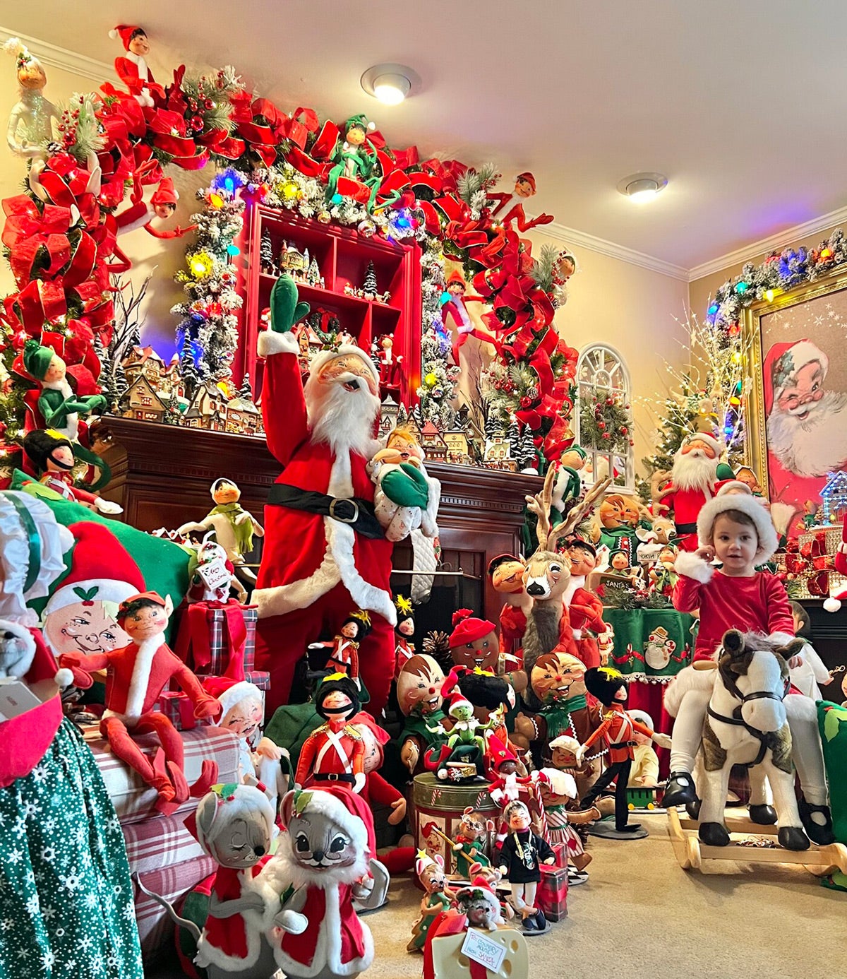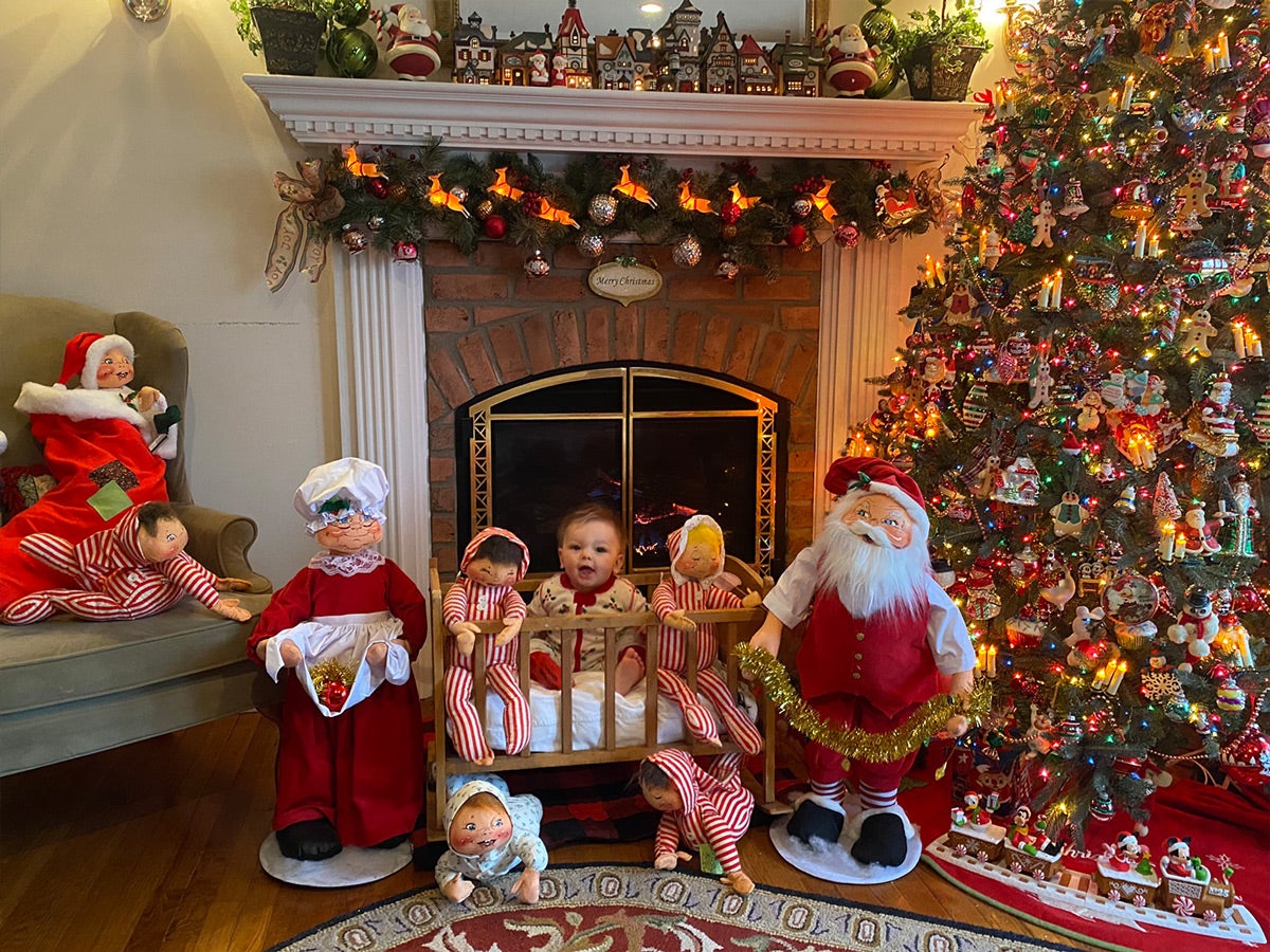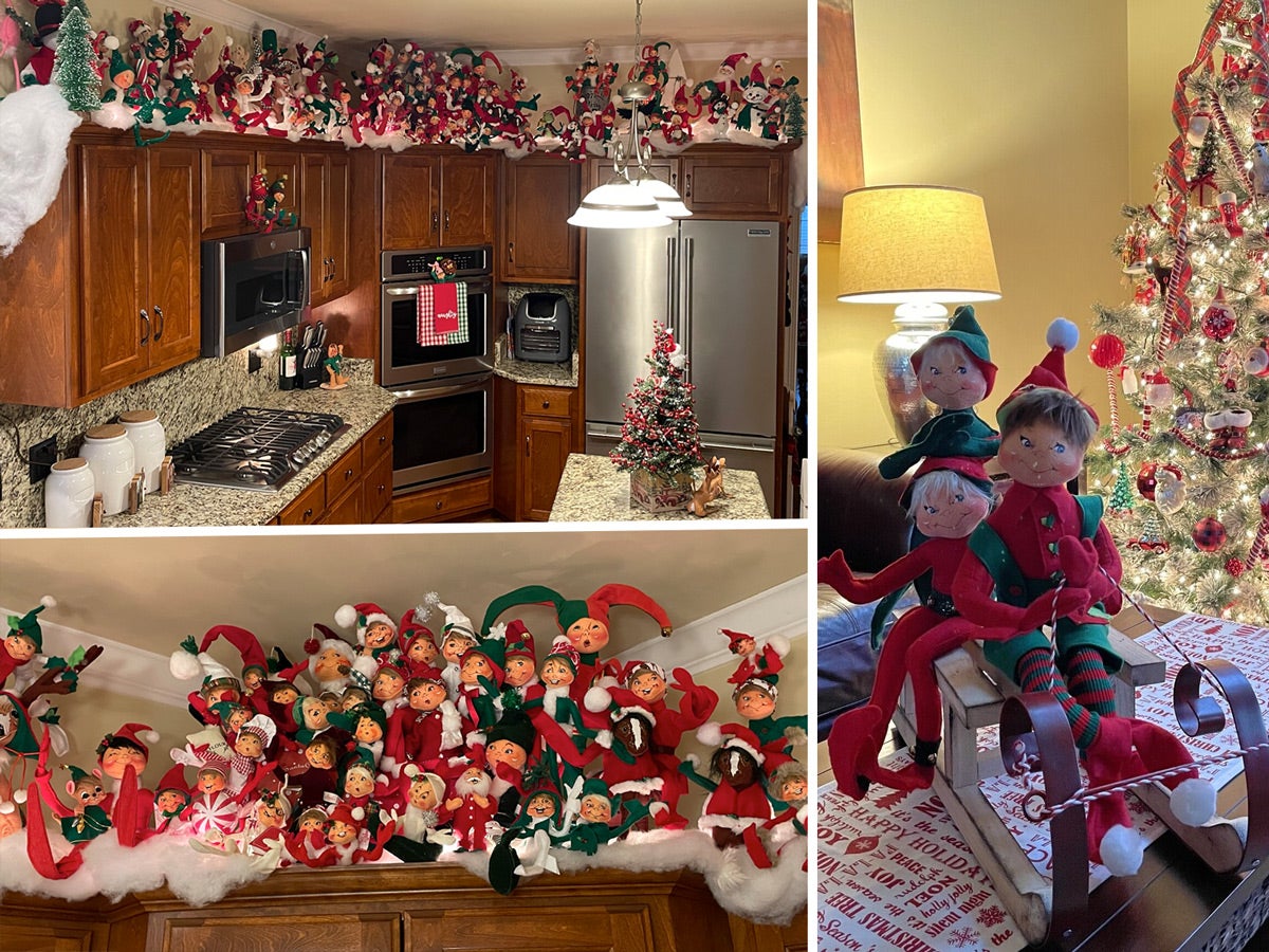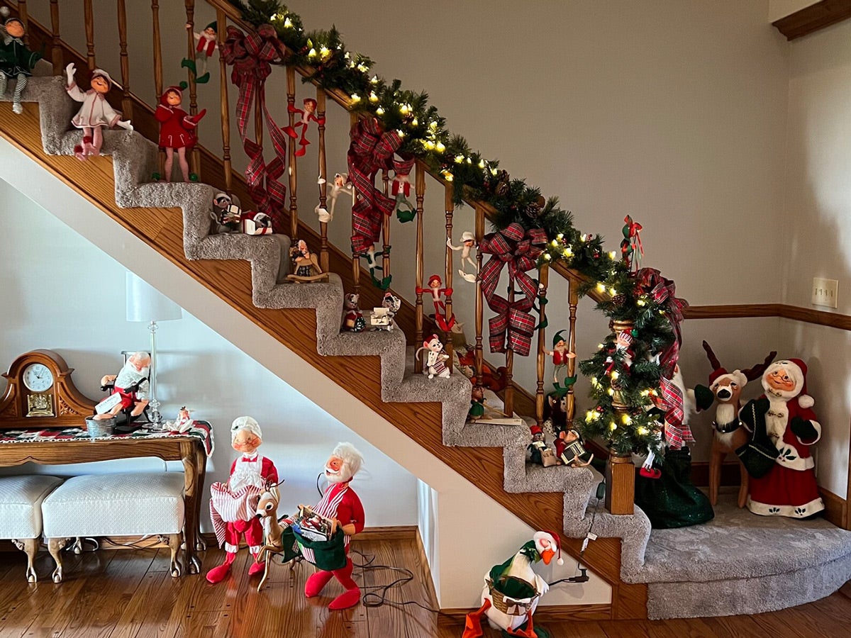 It is always such a challenge to select only a handful of winners. Luckily, we have winners in five unique categories: Best Elf Display, Best Christmas Tree, Best Fireplace / Mantle, Best Staircase, and Best Centerpiece. We also have recognized several incredible runners-up in these unique decorative spaces as well as some well-deserving honorable mentions. Winners will receive a $100 Annalee.com gift card in each category, runners-up will receive a $50 gift card. Congrats to all winners! We applaud all our entrants and welcome you to review all the amazing submission from this holiday season. We are honored and inspired by your love of Annalee and merry decorating. And now, we proudly present the 2021 Holiday Photo Contest winners.