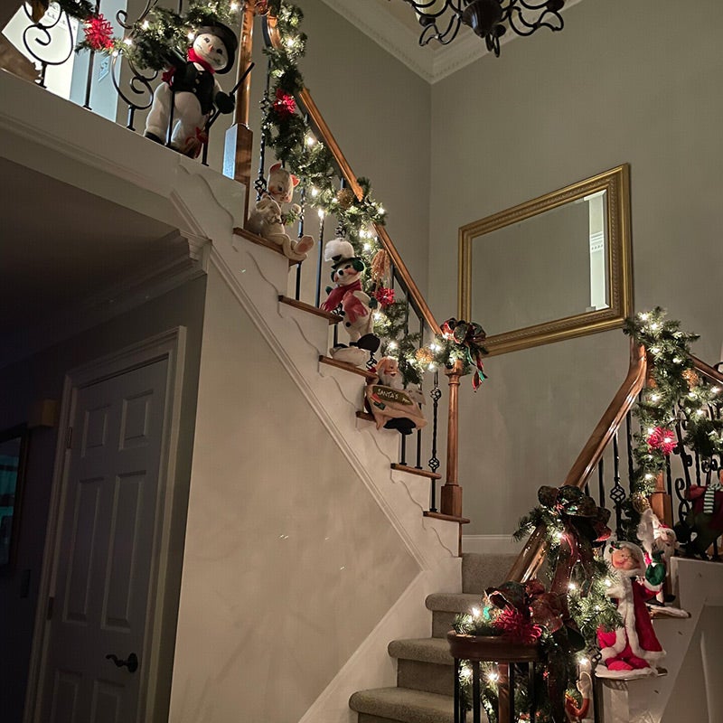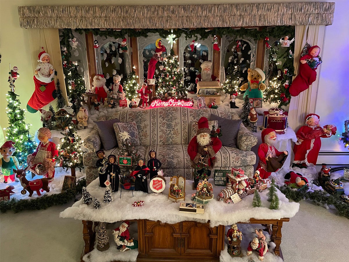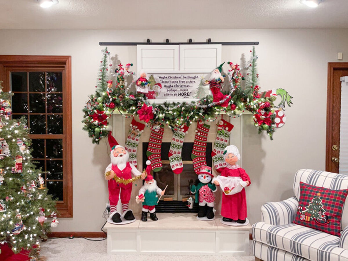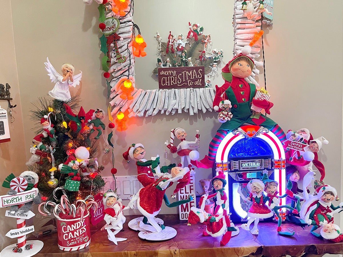 It is always such a challenge to select only a handful of winners. Luckily, we have winners in five unique categories: Best Elf Display, Best Christmas Tree, Best Fireplace / Mantle, Best Staircase, and Best Centerpiece. We also have recognized several incredible runners-up in these unique decorative spaces as well as some well-deserving honorable mentions. Winners will receive a $100 Annalee.com gift card in each category, runners-up will receive a $50 gift card. Congrats to all winners! We applaud all our entrants and welcome you to review all the amazing submission from this holiday season. We are honored and inspired by your love of Annalee and merry decorating. And now, we proudly present the 2021 Holiday Photo Contest winners.
