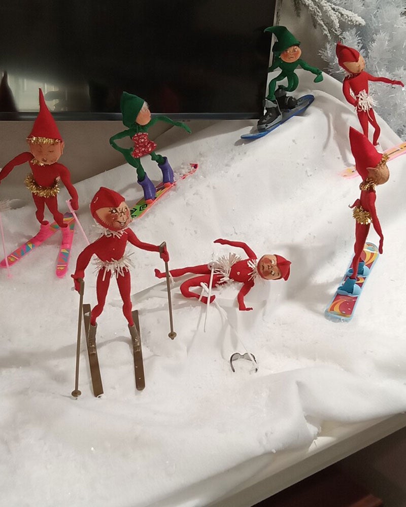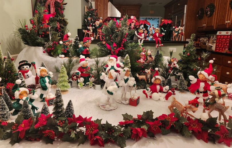 We contacted Jane about her Grand Prize submission and she replied, “Wow!!!!! Thank you so much, I am beyond thrilled to receive this message and your kind words- it is such an honor as longtime Annalee lover and collector! I love to put my display together every year and I was so excited to share it this year as I think it’s my favorite to date! The best part is sharing it with my family, neighbors, and friends so what a thrill to be featured on the blog post and share it with so many other Annalee lovers! In addition to these elves, I have more in other areas of my home as well as quite an extensive Snowman and Gingerbread collection, so this gift card will go to great use!”