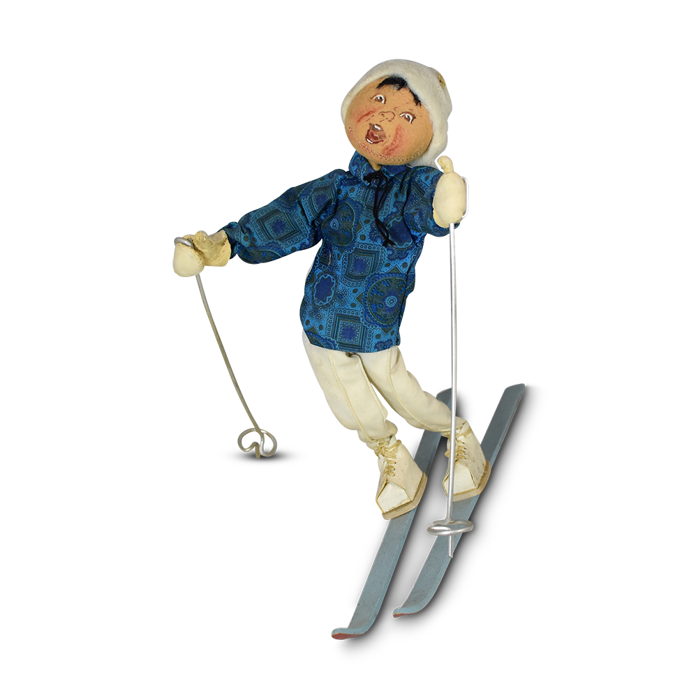 Most people think of Annalee dolls as cheerful home decor for holidays throughout the year. But did you know that Annalee’s first “big break” was actually creating advertising displays to promote skiing in New Hampshire? From the early 1950s to the 1970s, Annalee dolls were the official mascots of New Hampshire tourism. Annalee Thorndike was charged with designing dozens of dolls highlighting activities in New Hampshire. The earliest dolls showcased the great outdoors, with the skiing industry the most-prominently featured.