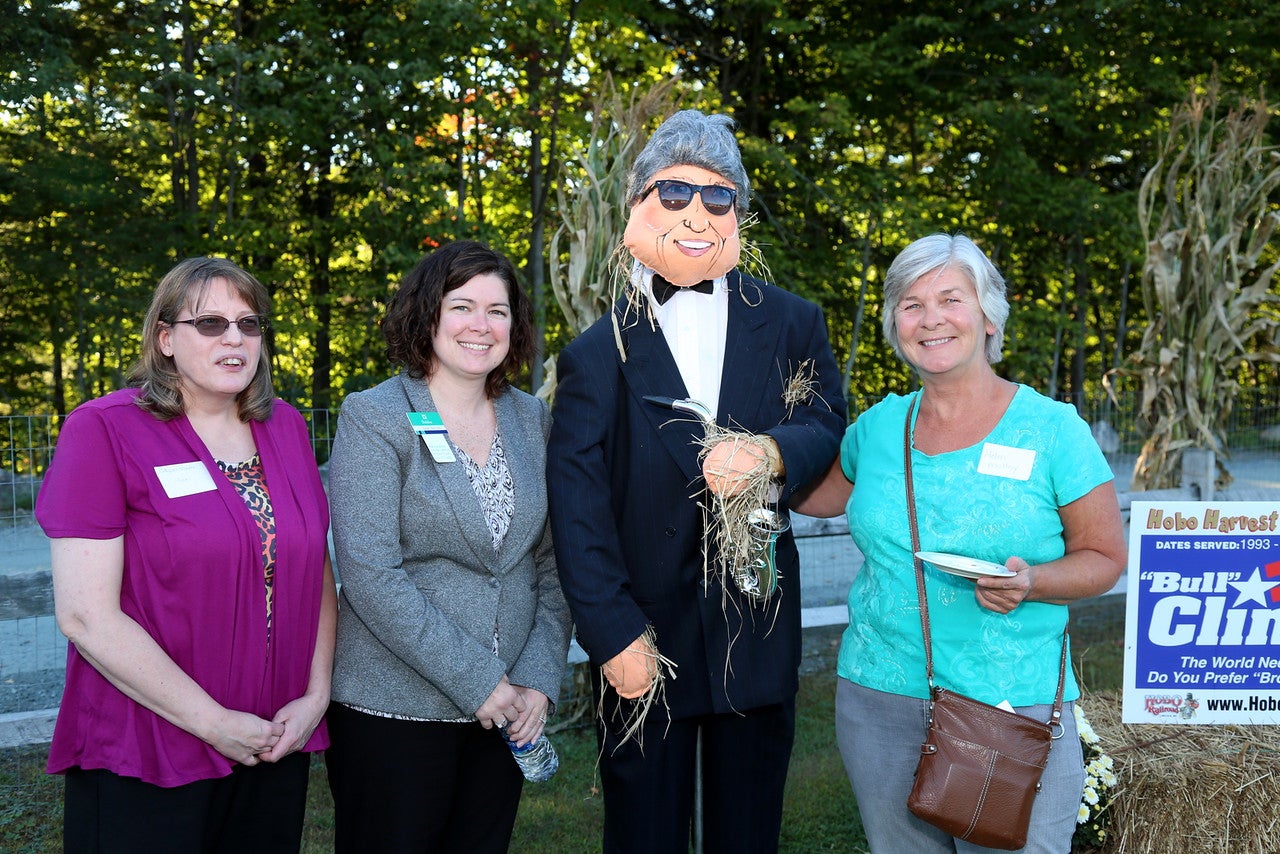 From September 17th through October 16th, the Hobo Railroad of Lincoln, NH will be hosting their “Hobo Harvest Time Express” event. During this time their property takes on an entirely new look! First, there is the addition of a farm stand stocked with New Hampshire made products along with a farm yard full of games for all ages. Patrons can enjoy things like pumpkin bowling, ring toss, horse shoes, bean bag toss, sack races and corn hole. There is also an antique tractor display. For the past three years, Annalee has been helping the folks at the Hobo Railroad by building the “Cornstalk Critters” that also decorate their farm yard. These life sized scarecrows make fun photo ops for everyone stopping by!