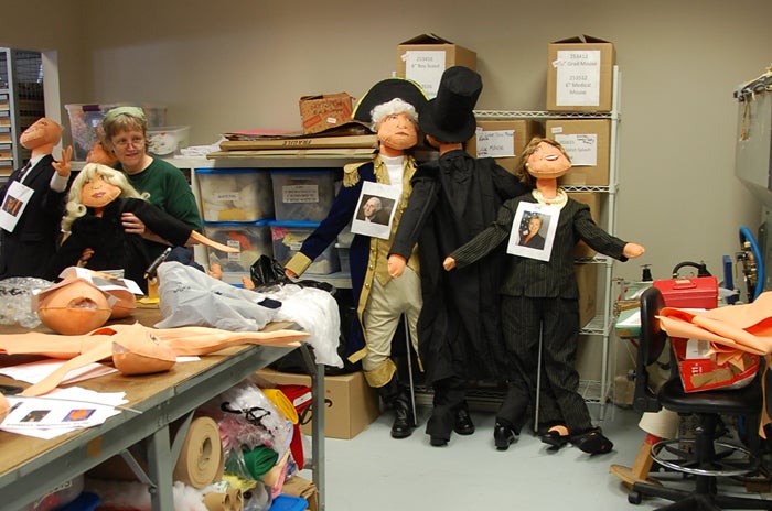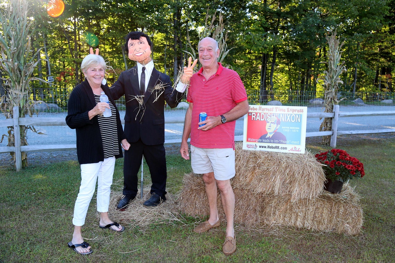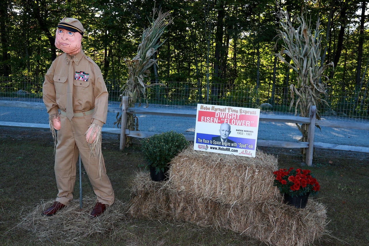 This year’s timely theme for the cornstalk critters is called “Scarecrows of the Oval Office”. Included in the mix of straw-filled characters are George Washington, Abraham Lincoln, Thomas Jefferson, General Dwight Eisenhower, John F. Kennedy with his wife Jacqueline Kennedy and their two young children Caroline Kennedy & John Kennedy Jr. You’ll also find Ronald Reagan, and Bill Clinton with a saxophone, along with the two candidates running for President in 2016, Donald Trump and Hillary Clinton. All of the scarecrows have traditional Annalee Doll faces! They are posed and dressed in such a way that makes them easy to recognize. The famous cornstalk critters will be on display and available for photo ops between 10:00am and 3:00pm daily.