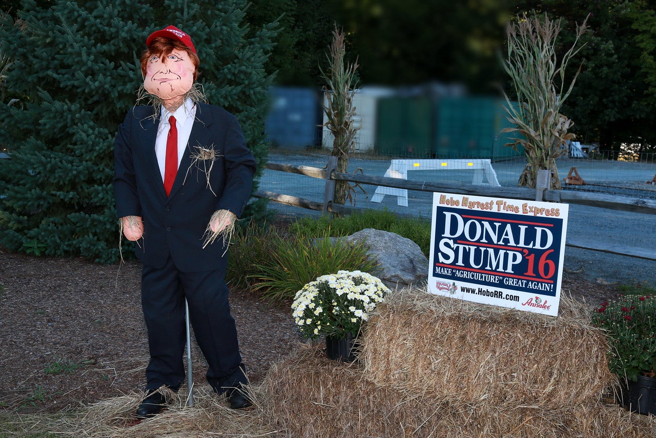 This year’s timely theme for the cornstalk critters is called “Scarecrows of the Oval Office”. Included in the mix of straw-filled characters are George Washington, Abraham Lincoln, Thomas Jefferson, General Dwight Eisenhower, John F. Kennedy with his wife Jacqueline Kennedy and their two young children Caroline Kennedy & John Kennedy Jr. You’ll also find Ronald Reagan, and Bill Clinton with a saxophone, along with the two candidates running for President in 2016, Donald Trump and Hillary Clinton. All of the scarecrows have traditional Annalee Doll faces! They are posed and dressed in such a way that makes them easy to recognize. The famous cornstalk critters will be on display and available for photo ops between 10:00am and 3:00pm daily.