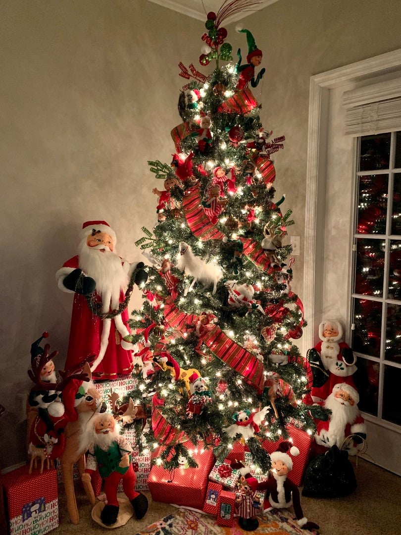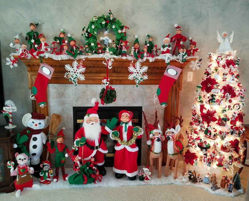 Selecting winners was an undertaking this year! There were so many wonderful photos shared. In addition to all your votes, we asked all the elves at Annalee Headquarters in Meredith, New Hampshire to review photos and choose a few favorites. There were so many great entries that the elves decided they wanted to celebrate a few runners-up and a grand prize winner as well. One winner was chosen in each of five unique categories: Best Mantel or Fireplace, Best Christmas Tree, Best Centerpiece, Best Holiday Wreath, and Best Elf Display. One grand prize winner was also chosen and awarded a $150 gift card. Each first place winner won a $100 gift card to annalee.com. The runners-up also will receive a $25 gift card to continue growing their holiday collections!