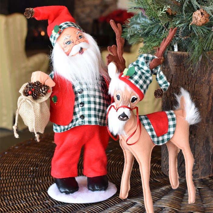 Do you like stopping by the woods on a snowy evening? We are so excited to release the Northwoods Christmas Collection featuring dolls in a cozy hunter green check and festive felt outfits! This unique theme is sure to be a hit in New England and beyond with pine cones and berries accents. Don’t miss the moose — he’s going to be a popular hit with his chipmunk, deer (available in multiple sizes), and charming mice buddies. This collection also has Santas and elves in two different sizes. We love the 15in Northwoods Christmas Santa paired with the 12in Northwoods Christmas Deer.