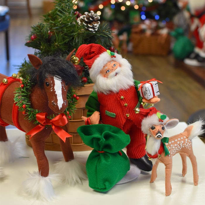 Jingle bells, j-j-jingle bells, jingle all the way! Named for the favorite Christmas carol, this collection features dolls in soft red corduroy with festive green accents. Jingle bells accessorize these traditional Christmas designs making this a musical theme! The collection features six jolly elves from 5 inches to 14 inches! It features unique Santas and even a Mrs. Santa. There are many fun animals, too, including a Clydesdale, cow, deer, polar bear, and don’t forget the giraffe! Decorating is easy with this timeless collection.