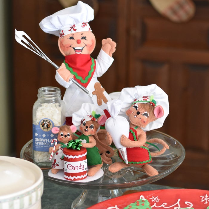 Who doesn’t love Christmas cookies and sweets? Each year Annalee is proud to release a handful of chef helpers in our Holiday Baking Collection. In 2018, this collection features a fun and festive peppermint candy print. The chef dolls in this theme are as sweet as can be! These designs make great host/hostess gifts and the perfect accoutrement to Santa’s plate of fireside cookies!