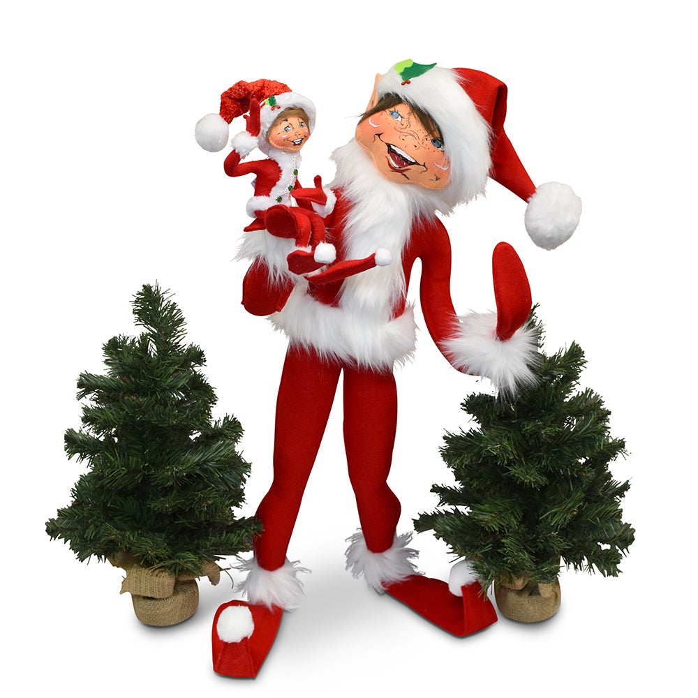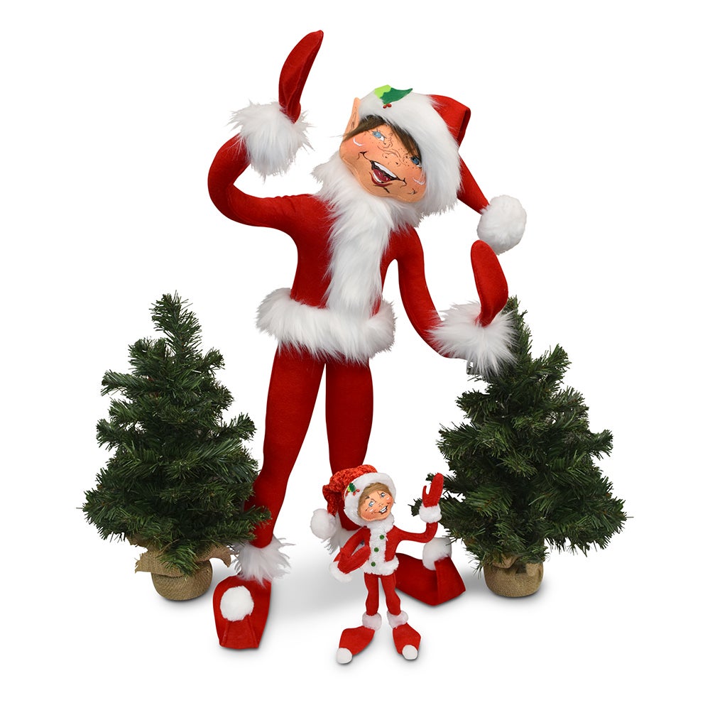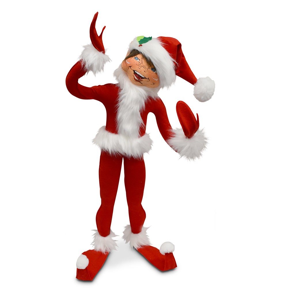 - This exclusive design is sure to become a Christmas treasure in your family! Jolly is a classic Annalee elf made with bright red felt with extra long white fur trim on the body, wrists and ankles. A Santa style hat with holly accent adorns its head. We’ve given Jolly the original elf ear, screen printed with artwork that was hand drawn by Annalee herself!
