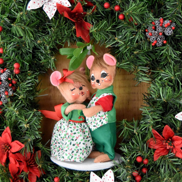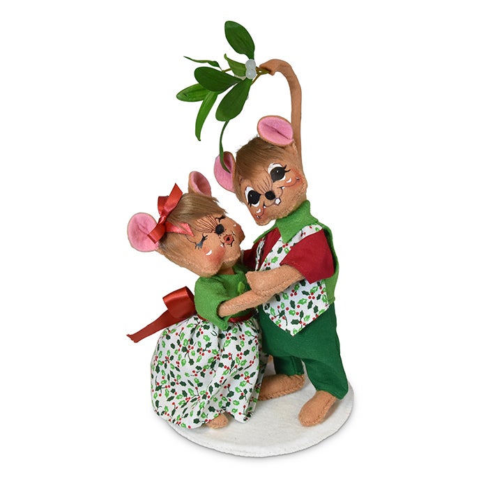 • This design was the perfect gift to represent you and your sweetheart at Christmastime! The amber mouse couple wears classic red, green and white outfits featuring a Christmas holly print. The mistletoe is held up over their heads in the tail of the boy mouse! The girl mouse is puckered up and ready for her Christmas kiss!