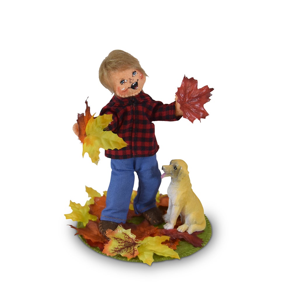 • This is an adorable design for Autumn decorating. It tells the story of a boy playing in a pile of colorful leaves with his loyal dog!