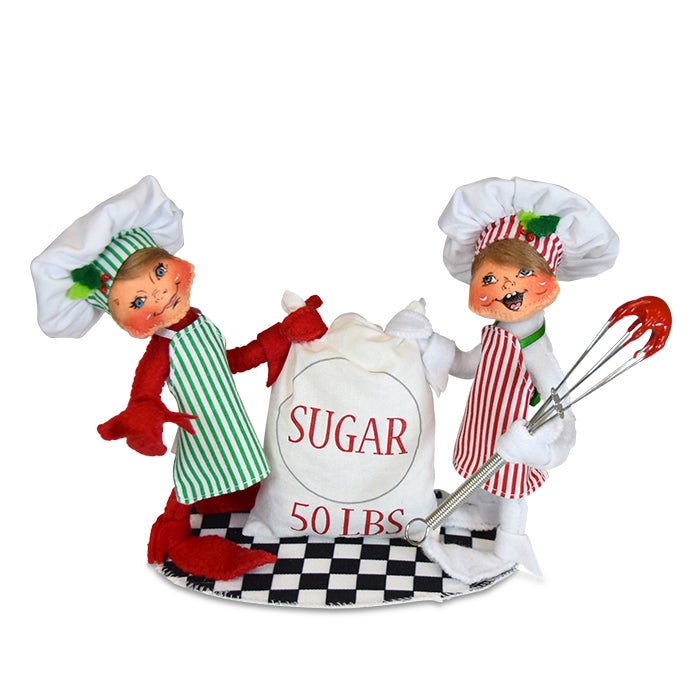 • These 5 inch chef elves are preparing to make some Christmas sweets! They wear chef hats and aprons.